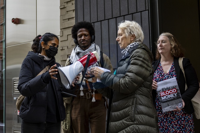 Protesters gathered outside the London Collective Investment Vehicle (LCIV) offices in Central London, calling for the organisation to divest pensions and investments from companies linked to Israel. Demonstrators held placards and banners urging financial accountability and solidarity with Palestinians, demanding that public funds not be used to support the occupation., Credit:Zak Irfan / Avalon