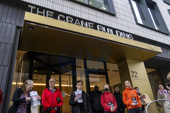 Protesters gathered outside the London Collective Investment Vehicle (LCIV) offices in Central London, calling for the organisation to divest pensions and investments from companies linked to Israel. Demonstrators held placards and banners urging financial accountability and solidarity with Palestinians, demanding that public funds not be used to support the occupation., Credit:Zak Irfan / Avalon