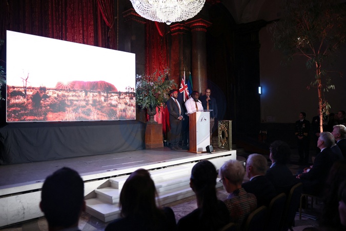 People attend a celebration to commemorate the 40th Anniversary of the Handback of Uluru-Kata Tjuta to its Traditional Owners, at the Australian High Commission in London, Britain, October 16, 2025., Credit:Avalon.red / Avalon