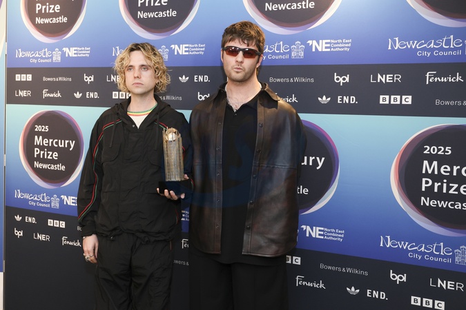 Conor Deegan and Grian Chatten of Fontaines DC ,arrive at Mercury Prize Awards, at Utilita Arena, Newcastle, on 16 October 2025, Credit:David Wala / Avalon