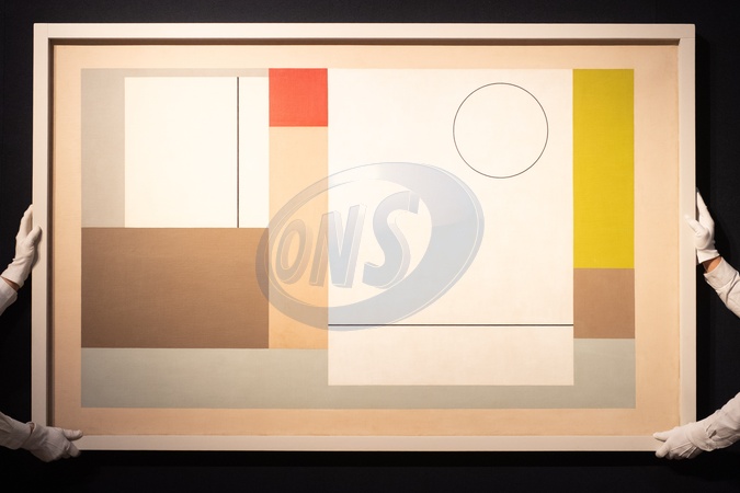 A staff member views 'December 1942 - April 1944 (abstract painting)' by Ben Nicholson (est. £800k - £1.2m) at Christie's 'Modern British and Irish Art Evening Sale' which is to go on auction on 22nd and 23rd October 2025 - Christie's King Street, London, England, UK on Friday 17 October, 2025., Credit:Justin Ng / Avalon