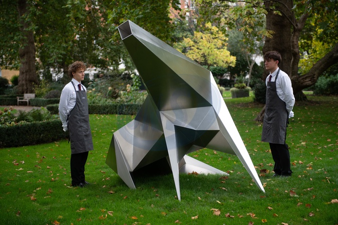 A staff member views 'Beast Alerted I' by Lynn Chadwick (est. £500k - £800k) at Christie's 'Modern British and Irish Art Evening Sale' which is to go on auction on 22nd and 23rd October 2025 - Christie's King Street, London, England, UK on Friday 17 October, 2025., Credit:Justin Ng / Avalon