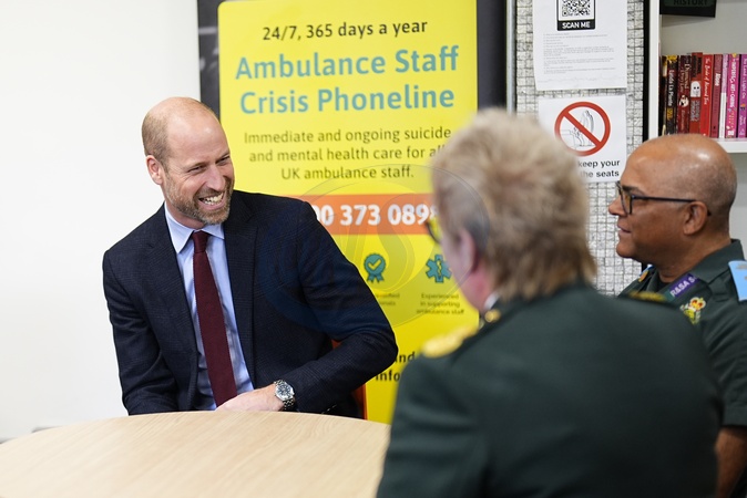 The Prince of Wales meets paramedics and other front-line workers during a visit to the London Ambulance Service at its headquarters in Waterloo. Picture date: Friday October 17, 2025., Credit:Aaron Chown / Avalon