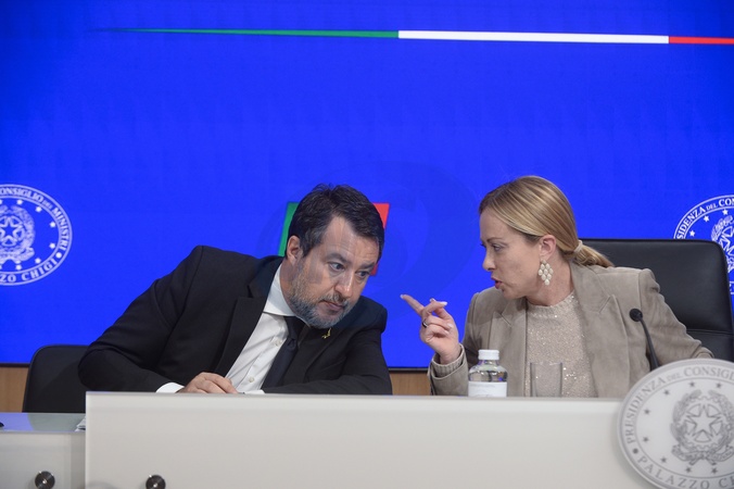 Italy, Rome, 17 October, 2025 : Chigi Palace, press conference, at the end of the Council of Ministers, on the government's economic law. In photo the Premier Giorgia Meloni and vice premier Matteo Salvini, Credit:Stefano Carofei / Avalon