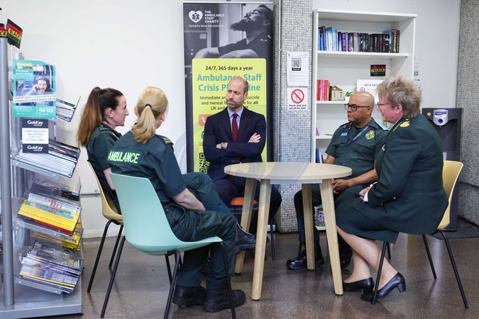 17/10/2025. London, UK. The Prince of Wales during a visit to the London Air Ambulance's headquarters in Waterloo, London. The Prince met staff who work in the wellbeing team at the headquarters and offer support and services to paramedics carrying out lifesaving work daily. His Royal Highness heard from paramedics and other front-line workers about their experiences and the importance of providing mental health support to those working in emergency services. The Prince also visited the Emergency Operations Control room where the team work 24/7 to manage 999 calls into the ambulance service in London and was able to hear from staff, including Call Handlers, Dispatchers and members of the Clinical Hub team about their different roles and how they help people daily over the phone and arrange help on scene. The Prince viewed the vehicles used by the LAS team including the world's first, purpose-built all-electric ambulance, and electric fast response cars. Finally, His Royal Highness met specialist paramedics and took part in a training demonstration., Credit:Pete Maclaine / Avalon