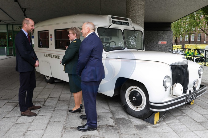 17/10/2025. London, UK. The Prince of Wales during a visit to the London Air Ambulance's headquarters in Waterloo, London. The Prince met staff who work in the wellbeing team at the headquarters and offer support and services to paramedics carrying out lifesaving work daily. His Royal Highness heard from paramedics and other front-line workers about their experiences and the importance of providing mental health support to those working in emergency services. The Prince also visited the Emergency Operations Control room where the team work 24/7 to manage 999 calls into the ambulance service in London and was able to hear from staff, including Call Handlers, Dispatchers and members of the Clinical Hub team about their different roles and how they help people daily over the phone and arrange help on scene. The Prince viewed the vehicles used by the LAS team including the world's first, purpose-built all-electric ambulance, and electric fast response cars. Finally, His Royal Highness met specialist paramedics and took part in a training demonstration., Credit:Pete Maclaine / Avalon