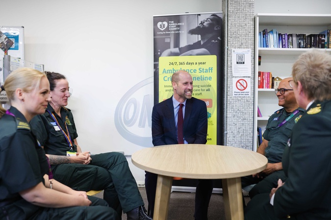 17/10/2025. London, UK. The Prince of Wales during a visit to the London Air Ambulance's headquarters in Waterloo, London. The Prince met staff who work in the wellbeing team at the headquarters and offer support and services to paramedics carrying out lifesaving work daily. His Royal Highness heard from paramedics and other front-line workers about their experiences and the importance of providing mental health support to those working in emergency services. The Prince also visited the Emergency Operations Control room where the team work 24/7 to manage 999 calls into the ambulance service in London and was able to hear from staff, including Call Handlers, Dispatchers and members of the Clinical Hub team about their different roles and how they help people daily over the phone and arrange help on scene. The Prince viewed the vehicles used by the LAS team including the world's first, purpose-built all-electric ambulance, and electric fast response cars. Finally, His Royal Highness met specialist paramedics and took part in a training demonstration., Credit:Pete Maclaine / Avalon
