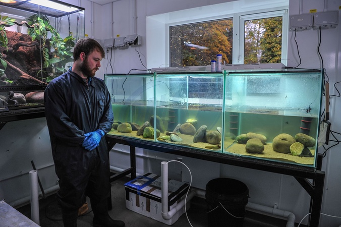 Zoo experts, nuns and academics have teamed up to ID-chip critically endangered Mexican salamanders.Eighty rare achoque salamanders in Mexico and the UK were implanted with tiny ID chips to check whether the microchips, which are roughly the size of a grain of rice, would stay in place if used on the dwindling wild population.They devised a specific implantation method to make putting the chips in place as stress-free and safe as possible.The process was led by Adam Bland, Assistant Team Manager for Amphibians at Chester Zoo, whose study was published with colleague Dr Gerardo Garcia and coauthors Dr Omar Dominguez, Dr Rodolfo Perez and Dr Richard Preziosi in JZAR journal recently.Thirteen of the salamanders in the study lived behind the scenes at Chester Zoo, while 26 came from the Centro Regional de Investigaciones Pesqueras Patzcuaro and another 13 are cared for at the Universidad Michoacana de San Nicolás de Hidalgo.A colony of achoques in the care of Domincan nuns at the Monasterio de la Virgen Inmaculada de la Salud provided 28 of the animals used in the study., Credit:Chester Zoo / Avalon