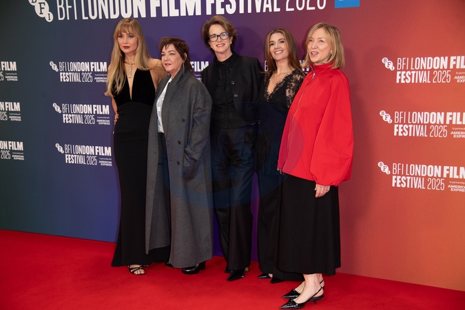 (L-R) - Jennifer Lawrence, Lynne Ramsay, Andrea Calderwood, Justine Ciarrocchi, Catherine George attends the Headline Gala of 'Die, My Love' at The 69th BFI London Film Festival at Royal Festival Hall, Southbank, London, England, UK on Friday 17 October, 2025., Credit:Justin Ng / Avalon