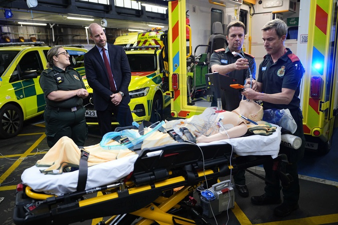 The Prince of Wales (second left) viewing a training demonstration during a visit to the London Ambulance Service at its headquarters in Waterloo. Picture date: Friday October 17, 2025., Credit:Aaron Chown / Avalon