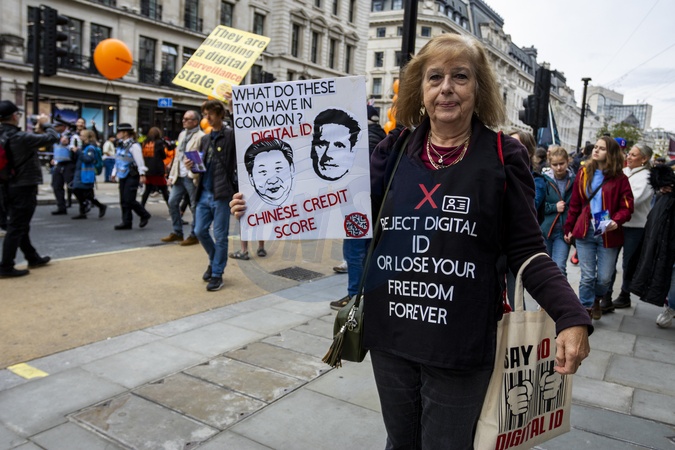 Protesters gathered at Marble Arch in Central London to oppose the UK government's proposed rollout of Digital IDs. Demonstrators voiced strong concerns about privacy, surveillance, and the erosion of personal freedoms. After the initial rally, activists marched from Marble Arch to 10 Downing Street, chanting slogans and holding placards demanding the protection of digital rights and civil liberties. The protest drew campaigners, privacy advocates, and concerned citizens united in their opposition to government overreach., Credit:Zak Irfan / Avalon