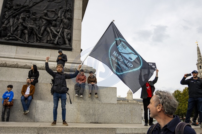 Protesters gathered at Marble Arch in Central London to oppose the UK government's proposed rollout of Digital IDs. Demonstrators voiced strong concerns about privacy, surveillance, and the erosion of personal freedoms. After the initial rally, activists marched from Marble Arch to 10 Downing Street, chanting slogans and holding placards demanding the protection of digital rights and civil liberties. The protest drew campaigners, privacy advocates, and concerned citizens united in their opposition to government overreach., Credit:Zak Irfan / Avalon