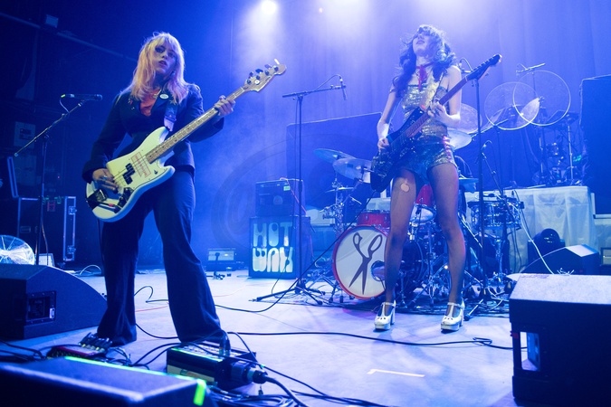 Lead singer/guitarist Tallulah Sim-Savage and bassist Lola Sam of English alternative band HotWax open for Nova Twins at Kentish Town Forum in London, England, UK on Saturday 18 October 2025 as part of their 'Parasites and Butterflies' UK Tour., Credit:Justin Ng / Avalon