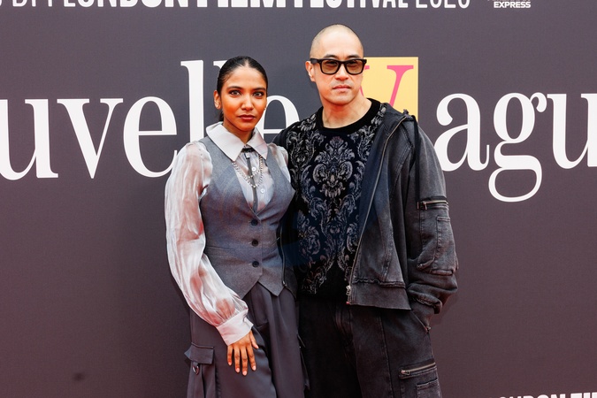 Sam Yo (right) and partner Hannah Frankson- BFI London Film Festival - Red carpet - Premiere of Nouvelle Vague - London, UK on 18th October 2025, Credit:Manuela Langotsch / Avalon