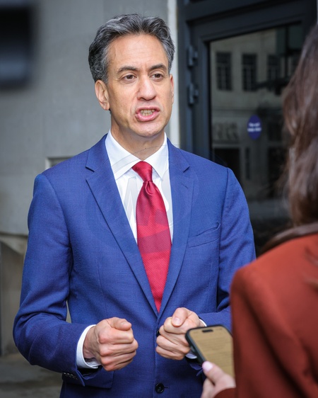 Ed Miliband, Energy Secretary, at the BBC for the Sunday morning media round, London, UK