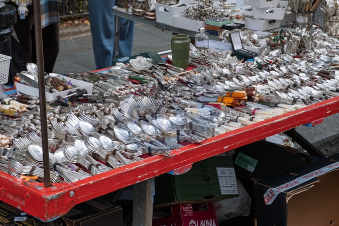 Cutlery on sale at Portobello Road market, Notting Hill, London,UK