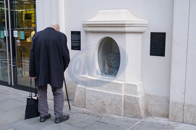 The once-famous London Stone is housed in a specially dedicated Portland Stone enclosure in the front wall of 111 Cannon Street.Its origin is indeed mysterious and there is a belief that if the Stone is ever moved the future of London would be jeopardized. Thus it now sits as near as possible to its original location which is now the middle of the Cannon Street roadway.City of London, London,. United Kingdom. 17 October 2025, Credit:Mark Fairhurst / Avalon