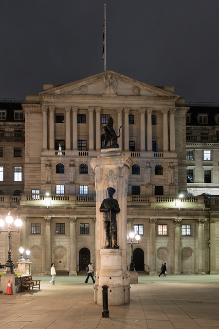 Bank of England at night, City of London, London,. United Kingdom. 17 October 2025, Credit:Mark Fairhurst / Avalon