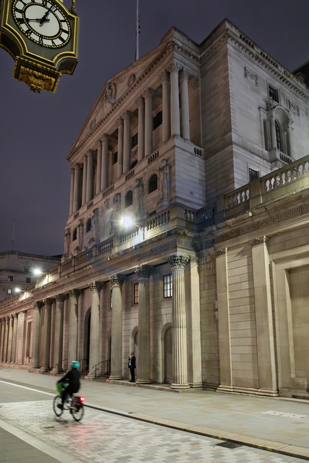 Bank of England at night in the City of London, London,. United Kingdom. 17 October 2025, Credit:Mark Fairhurst / Avalon