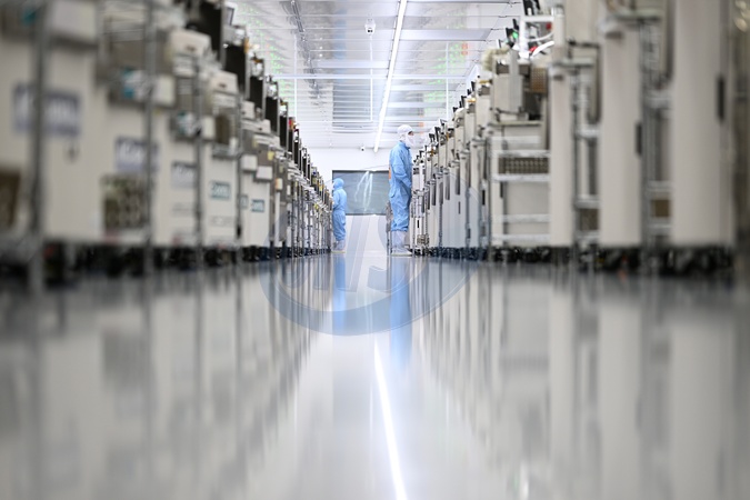 An employee works at a semiconductor chip plant in Suqian in east China's Jiangsu province Monday, Oct. 20, 2025., Credit:FANG DONGXU / Avalon