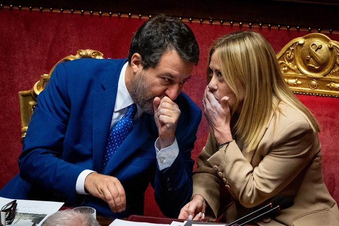 Italian Prime Minister Giorgia Meloni addresses the Italian Senate ahead of the next European Council at Palazzo Madama in Rome, Italy, on 22 October 2025.