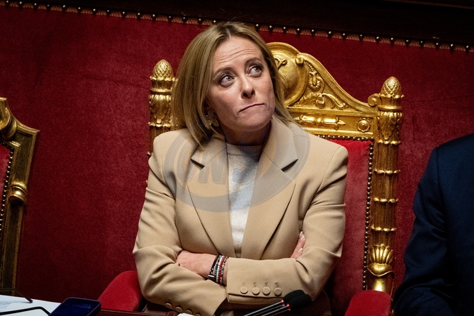 Italian Prime Minister Giorgia Meloni addresses the Italian Senate ahead of the next European Council at Palazzo Madama in Rome, Italy, on 22 October 2025., Credit:Stefano Costantino TTL / Avalon