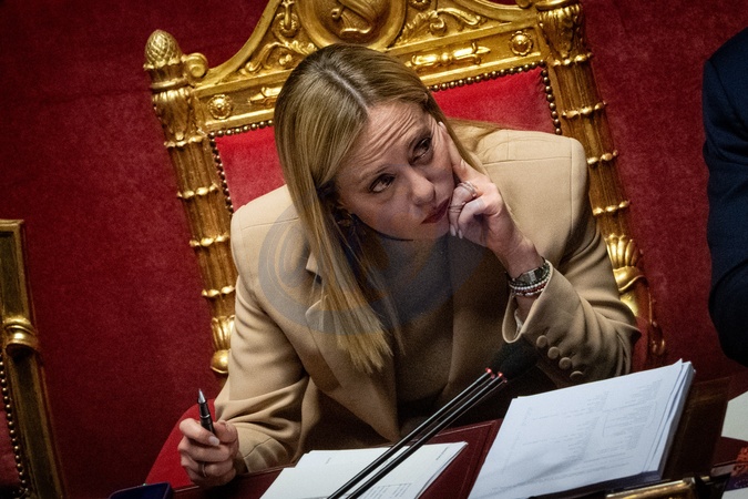Italian Prime Minister Giorgia Meloni addresses the Italian Senate ahead of the next European Council at Palazzo Madama in Rome, Italy, on 22 October 2025., Credit:Stefano Costantino TTL / Avalon