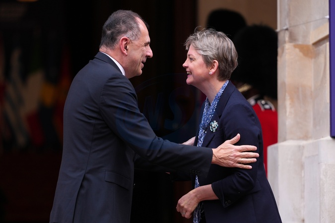 Britain's Foreign Secretary Yvette Cooper welcomes Greece's Foreign Minister Georgios Gerapetritis to a meeting of leaders of six Western Balkan nations with British and European officials at a Western Balkans Summit in London, Wednesday, Oct. 22, 2025.(AP Photo/Kirsty Wigglesworth, Pool), Credit:Kirsty Wigglesworth / Avalon