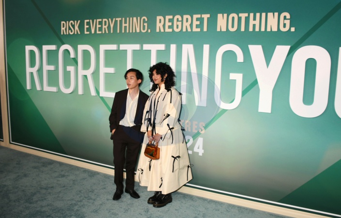 LOS ANGELES, CALIFORNIA - OCTOBER 20: (L-R) Ethan Costanilla and Samantha Morelos at the Los Angeles premiere of Paramount Pictures "Regretting You" at Paramount Studios on October 20, 2025 in Los Angeles, California., Credit:Jeffrey Mayer / Avalon