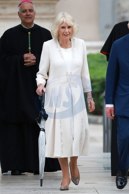 King Charles III and Queen Camilla visit the Papal Basilica and Abbey of St. Paul's Outside the Walls to attend an ecumenical service in recognition of His Majesty becoming 'Royal Confrater' of the Abbey of St Paul's. The Children of the Choir of His Majesty's Chapel Royal and the Choir of St. George's Chapel, Windsor, will perform. Rome, Italy 23 Oct 2025, Credit:Maria Laura Antonelli / Avalon