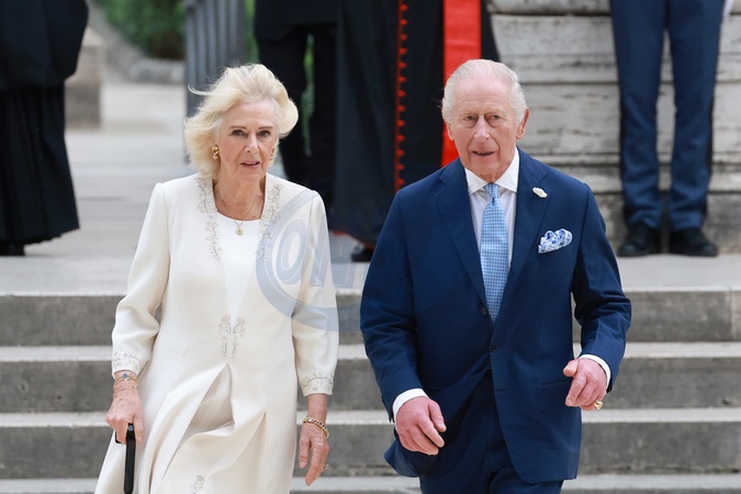 King Charles III and Queen Camilla visit the Papal Basilica and Abbey of St. Paul's Outside the Walls to attend an ecumenical service in recognition of His Majesty becoming 'Royal Confrater' of the Abbey of St Paul's. The Children of the Choir of His Majesty's Chapel Royal and the Choir of St. George's Chapel, Windsor, will perform. Rome, Italy 23 Oct 2025, Credit:Maria Laura Antonelli / Avalon
