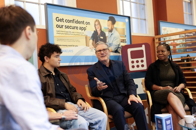23/10/2025. Brighton , United Kingdom. Prime Minister Keir Starmer meets staff and customers at Barclays Bank as he sets out his vision for digital identification., Credit:Simon Dawson / Avalon