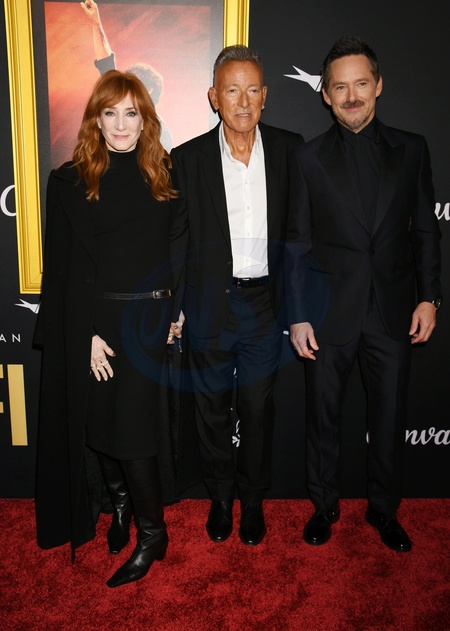 HOLLYWOOD, CALIFORNIA - OCTOBER 22: (L-R) Patti Scialfa, Bruce Springsteen and Scott Cooper at the AFI Los Angeles Premiere of 20th Century Studios' "Springsteen: Deliver Me From Nowhere" at The TCL Chinese Theater in Hollywood, California on October 22, 2025., Credit:Jeffrey Mayer / Avalon