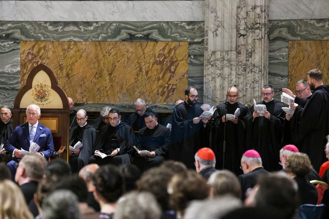 King Charles III and Queen Camilla visit the Papal Basilica and Abbey of St. Paul's Outside the Walls to attend an ecumenical service in recognition of His Majesty becoming 'Royal Confrater' of the Abbey of St Paul's. The Children of the Choir of His Majesty's Chapel Royal and the Choir of St. George's Chapel, Windsor, will perform. Rome, Italy 23 Oct 2025 *** Local Caption *** ROME, I - OCTOBER 23: King Charles III and Queen Camilla leave St. Paul Basilica after an ecumenical Service of Prayer on October 23, 2025 in Rome, Italy. During this historic State Visit, King Charles III and Queen Camilla will meet Pope Leo XIV for the first time since he was elected in May 2025. The King and Queen will join the Catholic Church's 2025 Jubilee Year celebrations, during which the heads of the Catholic Church and Church of England will pray together, the first time the British monarch and pontiff have done so at a church service since the English Reformation. (Photo by Franco Origlia/Getty Images), Credit:Franco Origlia / Avalon
