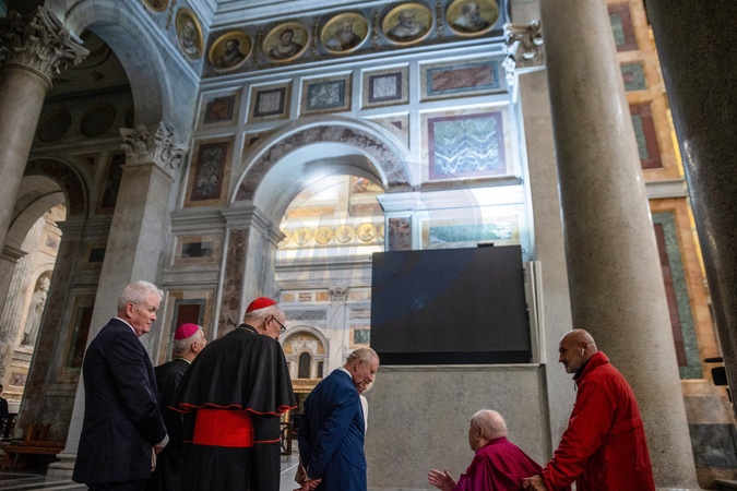 King Charles III and Queen Camilla visit the Papal Basilica and Abbey of St. Paul's Outside the Walls to attend an ecumenical service in recognition of His Majesty becoming 'Royal Confrater' of the Abbey of St Paul's. The Children of the Choir of His Majesty's Chapel Royal and the Choir of St. George's Chapel, Windsor, will perform. Rome, Italy 23 Oct 2025, Credit:Daniel Ibanez / Avalon