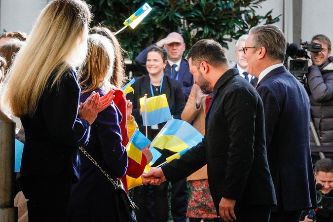Volodymyr Zelenskyy and Sir Keir Starmer walk to the Foreign Office, greeted by Ukrainian childrenDowning Street, London, UK