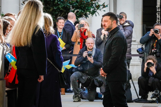 Volodymyr Zelenskyy and Sir Keir Starmer walk to the Foreign Office, greeted by Ukrainian childrenDowning Street, London, UK