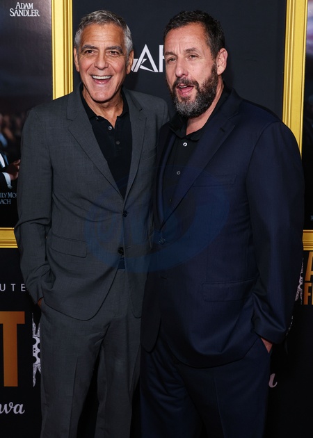 HOLLYWOOD, LOS ANGELES, CALIFORNIA, USA - OCTOBER 23: American actor, filmmaker, activist, and humanitarian George Clooney and American actor and comedian Adam Sandler arrive at the 2025 AFI (American Film Institute) Fest Presented By Canva - Premiere Of Netflix's 'Jay Kelly' held at the TCL Chinese Theatre IMAX on October 23, 2025 in Hollywood, Los Angeles, California, United States., Credit:Xavier Collin / Avalon