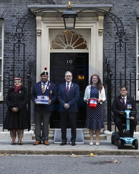 24/10/2025. London, United Kingdom. Prime Minister Keir Starmer buys a poppy from the Royal British Legion on the steps of 10 Downing Street., Credit:Simon Dawson / Avalon
