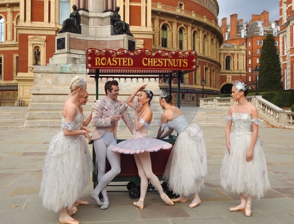 This Friday 24 October, six dancers from Birmingham Royal Ballet, in traditional ballet garb, on the Royal Albert Hall’s South Steps. This is to promote The Nutcracker this Christmas. Birmingham Royal Ballet will be performing The Nutcracker at the Royal