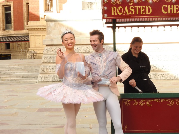 This Friday 24 October, six dancers from Birmingham Royal Ballet, in traditional ballet garb, on the Royal Albert Hall’s South Steps. This is to promote The Nutcracker this Christmas. Birmingham Royal Ballet will be performing The Nutcracker at the Royal