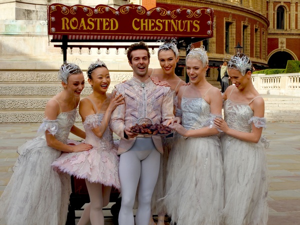 This Friday 24 October, six dancers from Birmingham Royal Ballet, in traditional ballet garb, on the Royal Albert Hall’s South Steps. This is to promote The Nutcracker this Christmas. Birmingham Royal Ballet will be performing The Nutcracker at the Royal