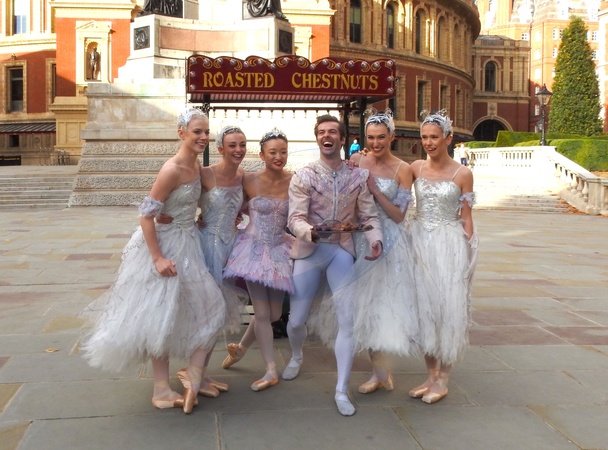 This Friday 24 October, six dancers from Birmingham Royal Ballet, in traditional ballet garb, on the Royal Albert Hall’s South Steps. This is to promote The Nutcracker this Christmas. Birmingham Royal Ballet will be performing The Nutcracker at the Royal