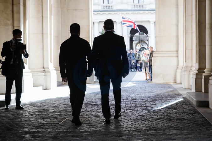 Volodymyr Zelenskyy and Sir Keir Starmer walk to the Foreign Office, greeted by Ukrainian childrenDowning Street, London, UK