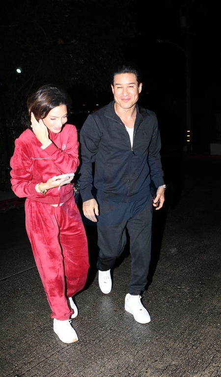Courtney Lopez and Mario Lopez arrive at the Braun house party, Chateau Marmont, Los Angeles, USA, 24 October 2025., Credit:MHD / Avalon