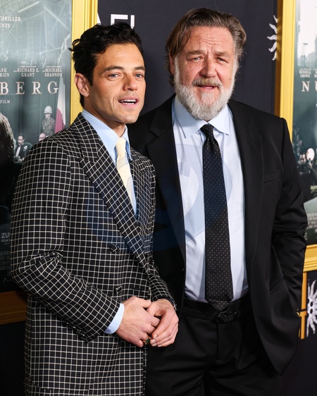 HOLLYWOOD, LOS ANGELES, CALIFORNIA, USA - OCTOBER 24: American actor Rami Malek and New Zealand-born Australian actor, producer, and musician Russell Crowe arrive at the 2025 AFI (American Film Institute) Fest Presented By Canva - Premiere Of Sony Pictures Classics' 'Nuremberg' held at the TCL Chinese Theatre IMAX on October 24, 2025 in Hollywood, Los Angeles, California, United States., Credit:Xavier Collin / Avalon
