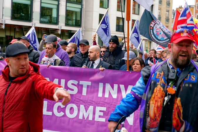 UKIP protest was planned in Whitechapel. Met police placed condition not allowing UKIP to protest in Tower Hamlets. UKIP moved to muster at London Oratory with march to Marble Arch. Met police set conditions to stop SUTR etc forming up anywhere near to the UKIP protest., Credit:Aldo Ciarrocchi / Avalon