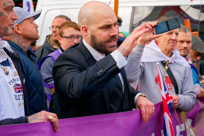 UKIP protest was planned in Whitechapel. Met police placed condition not allowing UKIP to protest in Tower Hamlets. UKIP moved to muster at London Oratory with march to Marble Arch. Met police set conditions to stop SUTR etc forming up anywhere near to the UKIP protest., Credit:Aldo Ciarrocchi / Avalon