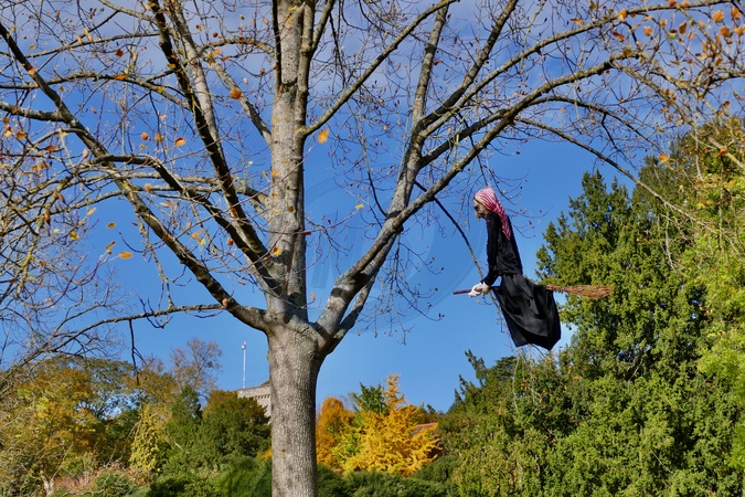 Characters on the Halloween trail. Friends of Caversham Court created a Halloween trail all made from recyclable materials placed around the picturesque Grade II listed grounds on the banks of the River Thames. Ghosts, witches, owls, goblins, Guy Fawkes and Cruella Deville complete with a Dalmation in her hand bag were on display to celebrate Halloween.Caversham Court garden is of national importance and listed in the English Heritage 'Register of English Parks and Gardens ' of special historic interest in England'., Credit:Geoffrey Swaine / Avalon