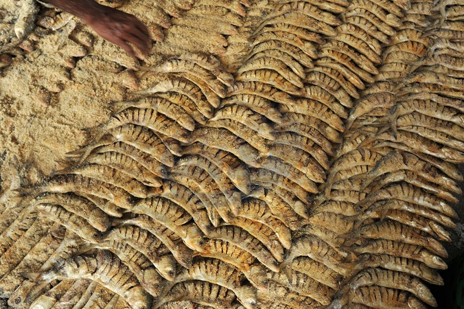 Chattogram, Bangladesh — Workers process salted Hilsa fish, locally known as "Nona Ilish,” using traditional methods at a coastal area in Chattogram, Bangladesh. Salted Hilsa is in high demand both locally and internationally. The delicacy holds deep economic, cultural, and traditional importance across Bangladesh and the wider coastal South Asian region., Credit:Md Rafayat Haque Khan / Avalon